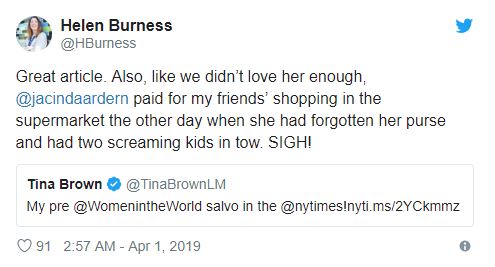 “Insiden ini menyebabkan kita lebih menyayanginya (Ardern),” kata Burness di Twitter.